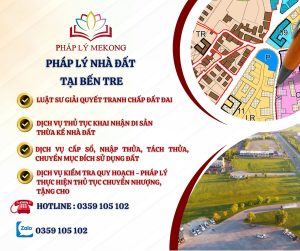 Công ty Luật Pháp Lý Mekong là một trong những đơn vị có nhiều năm kinh nghiệm chuyên môn trong lĩnh vực pháp lý liên quan đến đất đai. Đội ngũ Luật Sư, chuyên viên của Công ty đóng vai trò quan trọng trong việc bảo vệ quyền lợi hợp pháp của các cá nhân và tổ chức liên quan đến các vụ án, vụ việc trong lĩnh vực đất đai tại tỉnh Bến Tre.